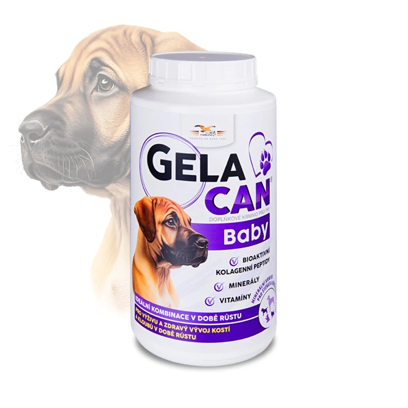 Gelacan® Baby je minerální krmivo s obsahem bioaktivních kolagenních peptidů, vitamínu E, selenu a kostitvorných minerálních látek potřebných pro správnou mineralizaci a vývoj skeletu.