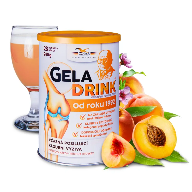 Geladrink Plus je obľúbeným a dlhými rokmi prevereným doplnkom stravy určený pre špeciálnu výživu vašich kĺbov, kostí, chrupaviek, ale aj kože a vlasov. Výrobok je kolagénneho charakteru a je zložený prevažne z kolagénnych peptidov. Obsahuje však aj vitamíny C a B komplex a minerálne látky ako je mangán a meď, ktoré majú antioxidačné účinky, alebo tiež vápnik pre zdravé kosti, horčík a iné. Prípravok obsahuje len telu úplne prirodzené látky a preto sa veľmi dobre vstrebáva.