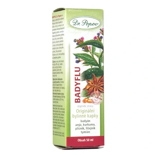 Dr. Popov Bylinné kapky Badyflu 50 mlskladem228 Kč/ ks188 Kč bez DPH